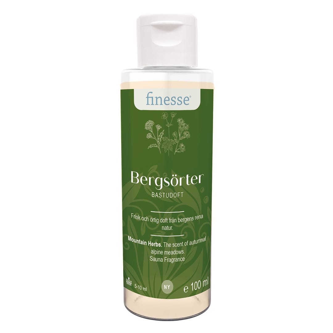 Finesse bastudoft Bergsörter 100 ml passar lika bra att använda till större gemensamma bastur som till mindre i hemmamiljöer. Doften är lätt att dosera, i vatten som man sedan häller på bastustenarna. Innehållet i denna bastudoft från finesse ger dig mindre risk för olika beläggningar på stenarna. Dessutom har den en hög kompatibilitet med olika sorters material. Du kan även blanda olika bastudofter från finesse.