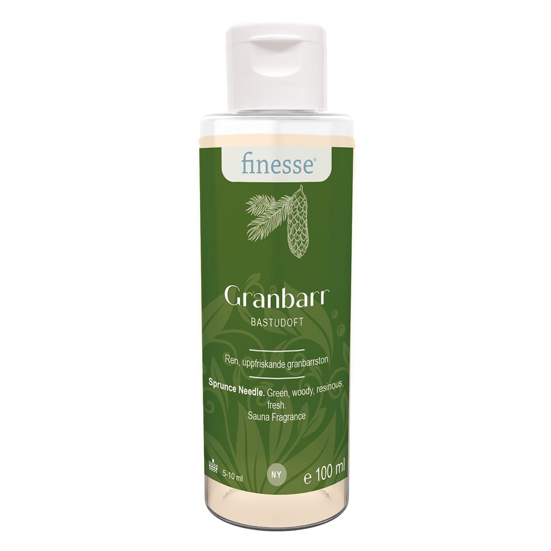 Finesse bastudoft Granbarr 100 ml passar lika bra att använda till större gemensamma bastur som till mindre i hemmamiljöer. Doften är lätt att dosera, i vatten som man sedan häller på bastustenarna. Innehållet i denna bastudoft från finesse ger dig mindre risk för olika beläggningar på stenarna. Dessutom har den en hög kompatibilitet med olika sorters material. Du kan även blanda olika bastudofter från finesse.