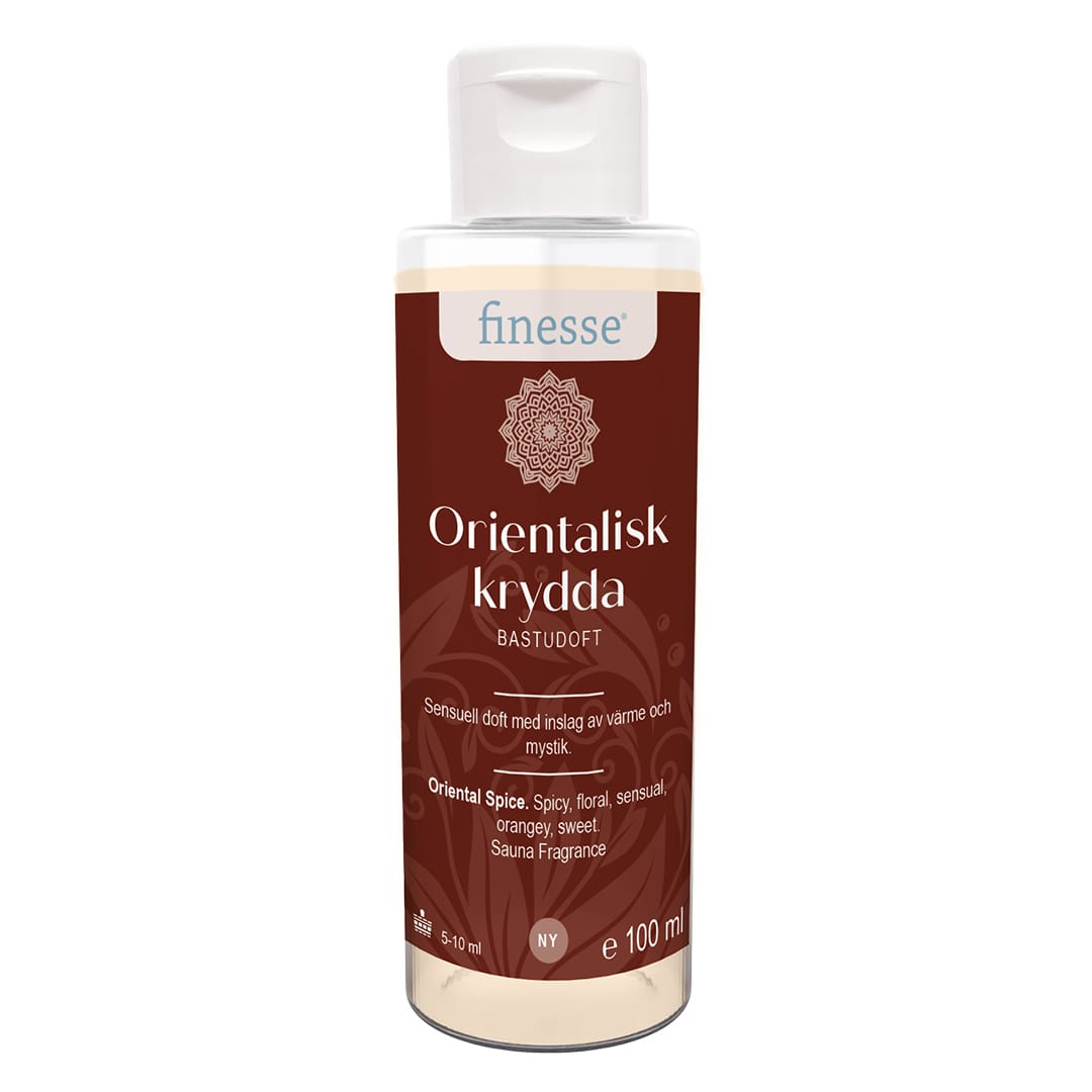 Finesse bastudoft Orientalisk krydda 100 ml passar lika bra att använda till större gemensamma bastur som till mindre i hemmamiljöer. Doften är lätt att dosera, i vatten som man sedan häller på bastustenarna. Innehållet i denna bastudoft från finesse ger dig mindre risk för olika beläggningar på stenarna. Dessutom har den en hög kompatibilitet med olika sorters material. Du kan även blanda olika bastudofter från finesse.