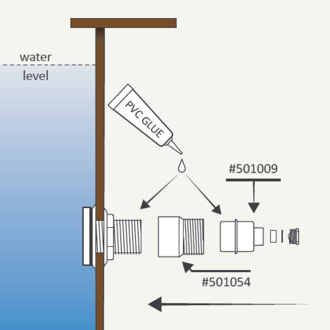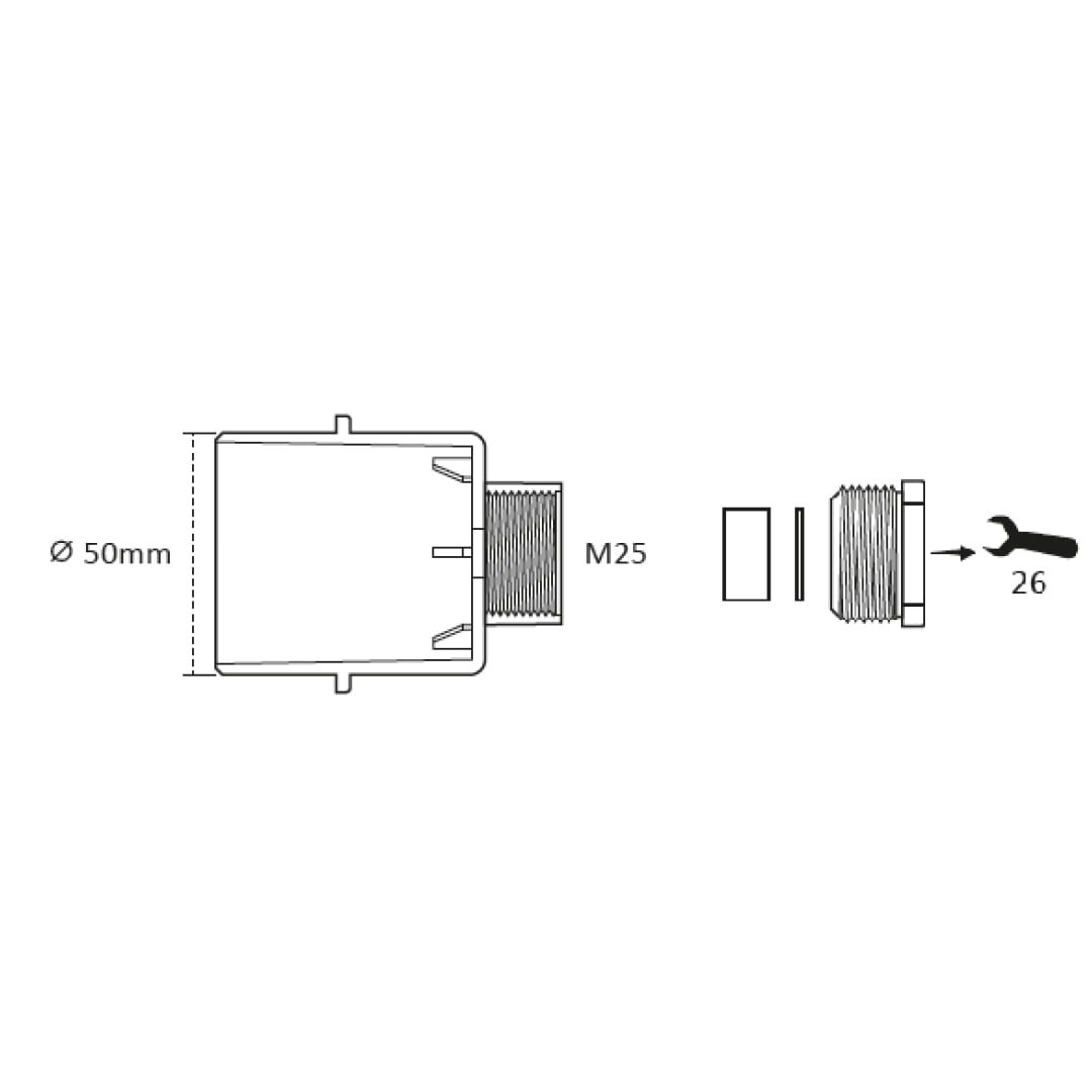 Detta installationskit är idealiskt för att installera en SEAMAID belysning i ovanmark pooler (exempelvis en stålväggspool) tack vare dess kabelgenomföring som tätar lampans kabel. Passar all belysning med 1,5’’ skruvanslutning.