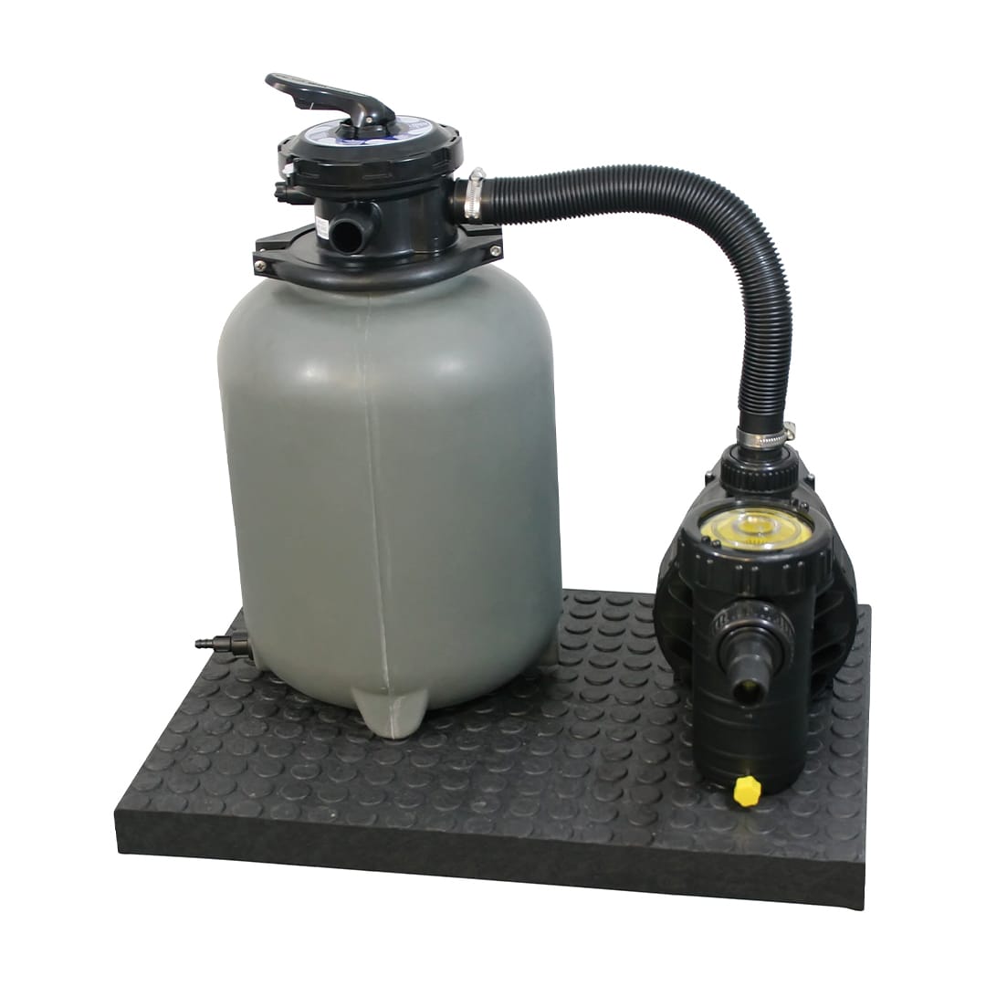 Planet Pool filteranläggning i storlek M med slangkoppling. Grå mattlaminerad polyestertank och cirkulationspump. Högsta kvalité kombinerad med en komfortabel öppning för enkel hantering. Integrerad avtappningsventil för vatten/sand och skruvad toppöppning.