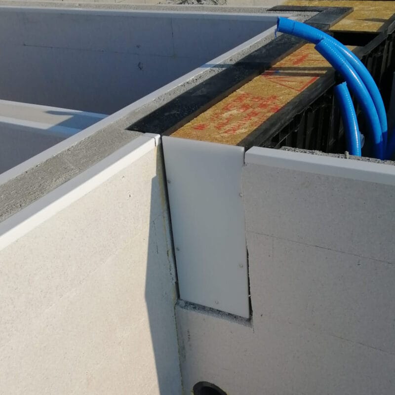 Poolstommen bygger man med CF blocken vilket man vartefter armerar både horisontellt och vertikalt mellan varje lager. När den är färdigbyggd fyller man dessa med betong. Tack vare minimala skarvar och släta byggstenar behöver man ingen spackling eller liknande efterbehandling. Den speciella konstruktionen ökar dessutom stabiliteten och gör poolen mycket robust och tålig.
